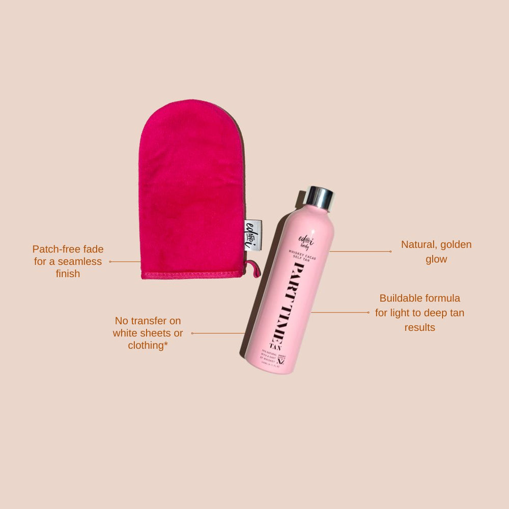 - Add ed&i body PART TIME tan onto a self-tanning mitt. Use long sweeping motion when applying to legs, arms, and body. Use the remaining residue on your tanning mitt and apply to the face, elbows, and knees. Use a buffing motion to these areas.