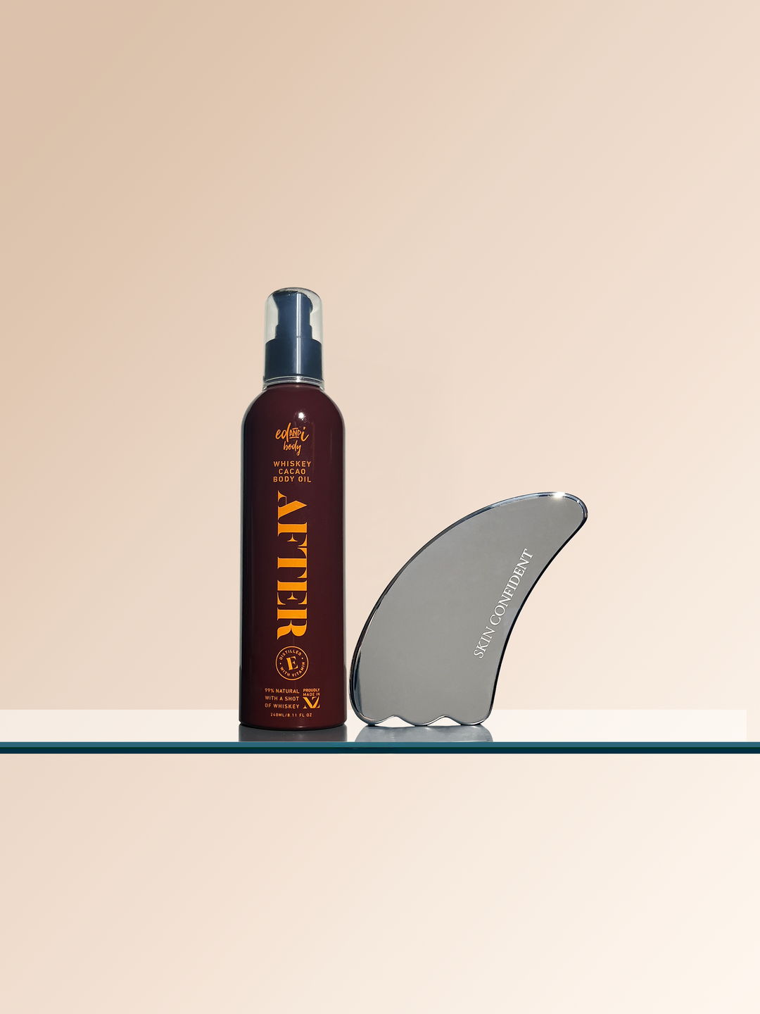To finish my routine, I layer on my body AFTER oil to not only give extra hydration for the skin, but to help with my nightly body GUA SHA routine. Doing 5-10 minutes of this each night helps with your lymphatic flow, moving toxins, increase blood flow through the body, fight stubborn fat and the appearance of cellulite and move any inflammation throughout your body.