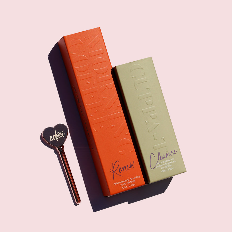 Wake up your skin with the energising power of caffeine, two ways. The Double Shot Duo pairs our gentle daily cleanser CUPPA-T with our invigorating deep exfoliator MORNING COFFEE, for skin that feels smooth, refreshed, and ready to take on the day.