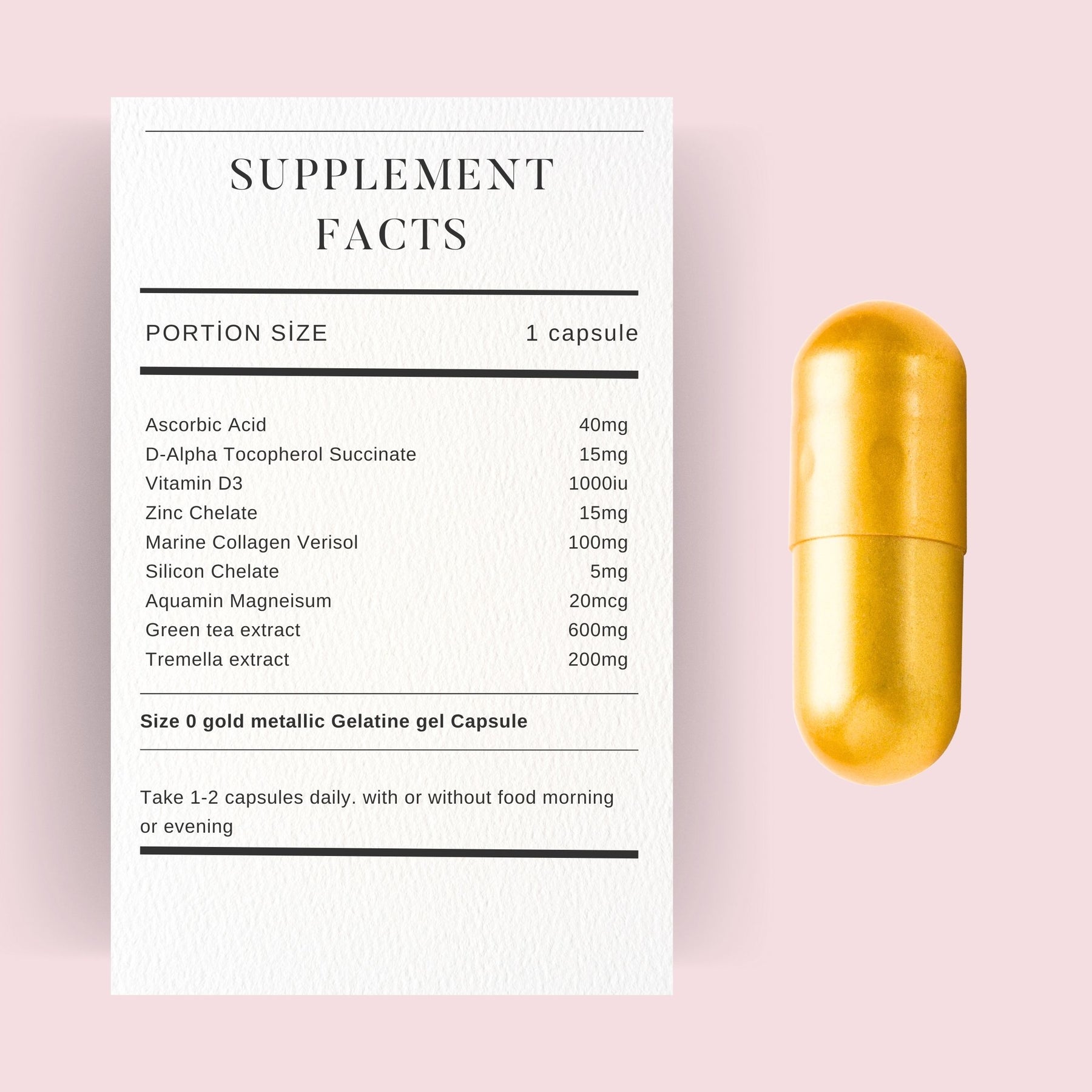 The 'Golden' Pill truely lives up to its name. I used to suffer from severe hormonal acne. Lots of red and sore bumps and scars that followed not long after. Discovering the GOLDEN PILL my skin has been the most healthiest and glowing i have ever seen it. I have definitely noticed the reduced amount of acne and less amounts of acne scars that i have on my face now and i feel so much more confident in myself with my natural skin. My nails have grown like crazy too! I cannot describe in words the wonders that this Golden Pill does but holy moly i will never stop taking it!